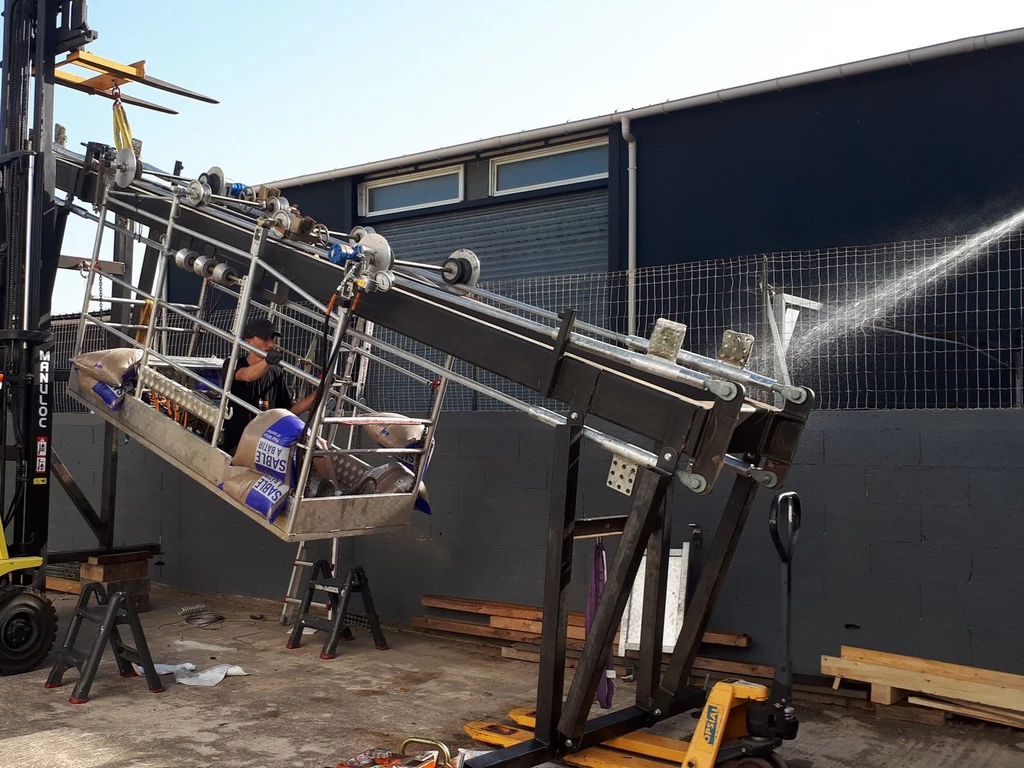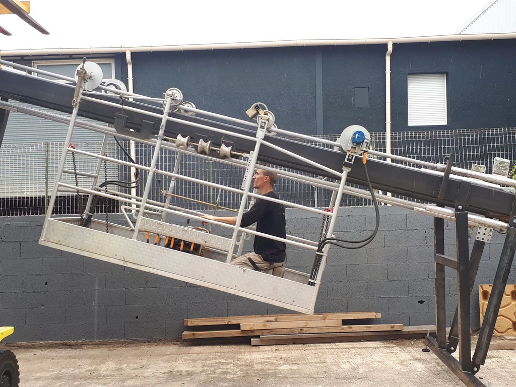 Il a été nécessaire d’imaginer, concevoir et dimensionner un châssis en acier suffisamment robuste pour pouvoir tendre des câbles de lignes hautes tension de 40 mm de diamètre.
