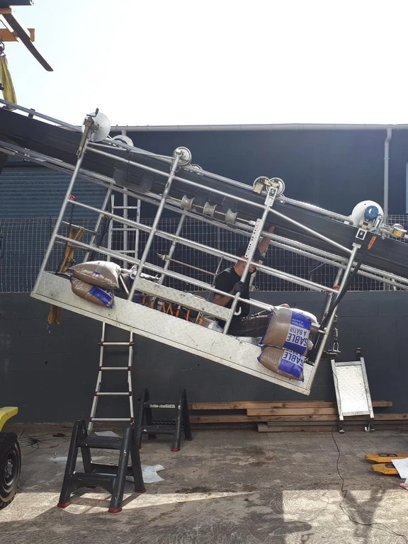 Une fois le banc installé dans notre atelier, nous y avons monté un exemplaire fonctionnel de la nacelle utilisée le jour de l’accident.