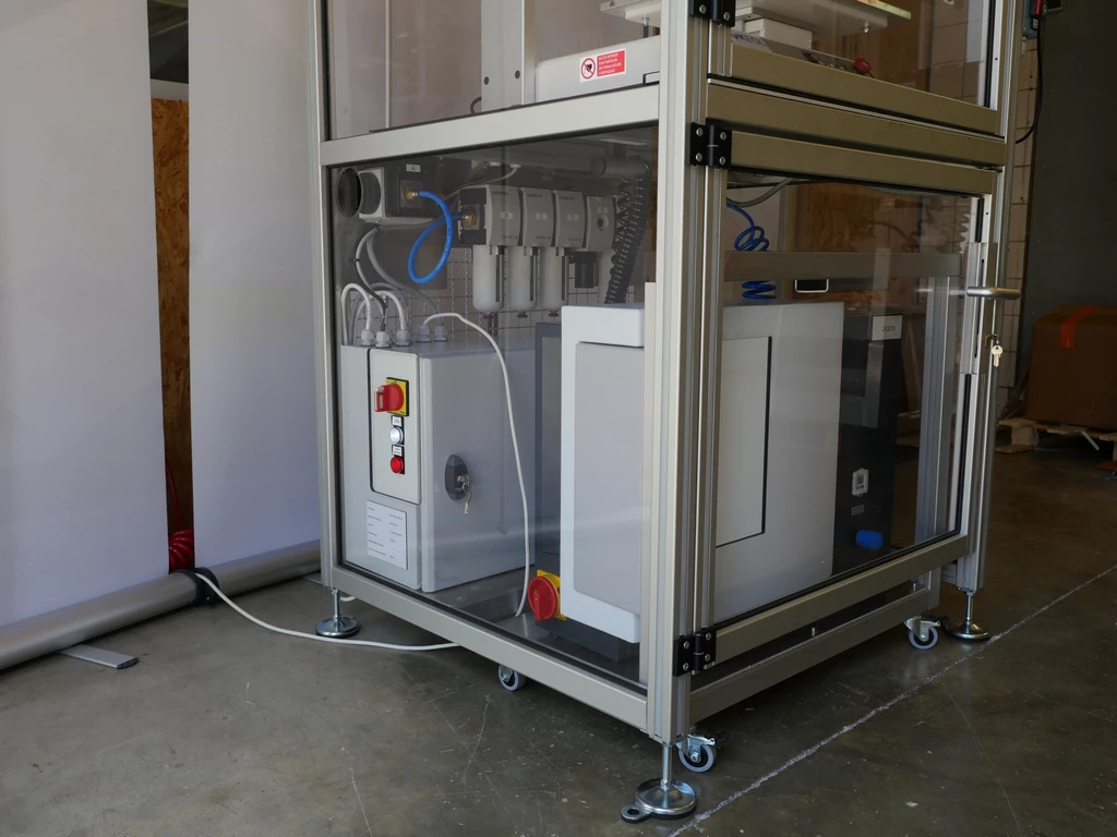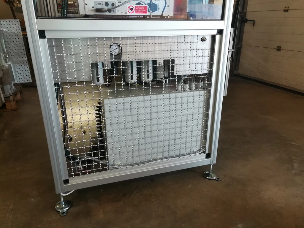 - Une enceinte dédiée à la sécurisation d’essais électriques, pour laquelle nous avons également fourni un chariot de transport isolé en bois. N’hésitez pas à le découvrir dans notre section Concept Bois.