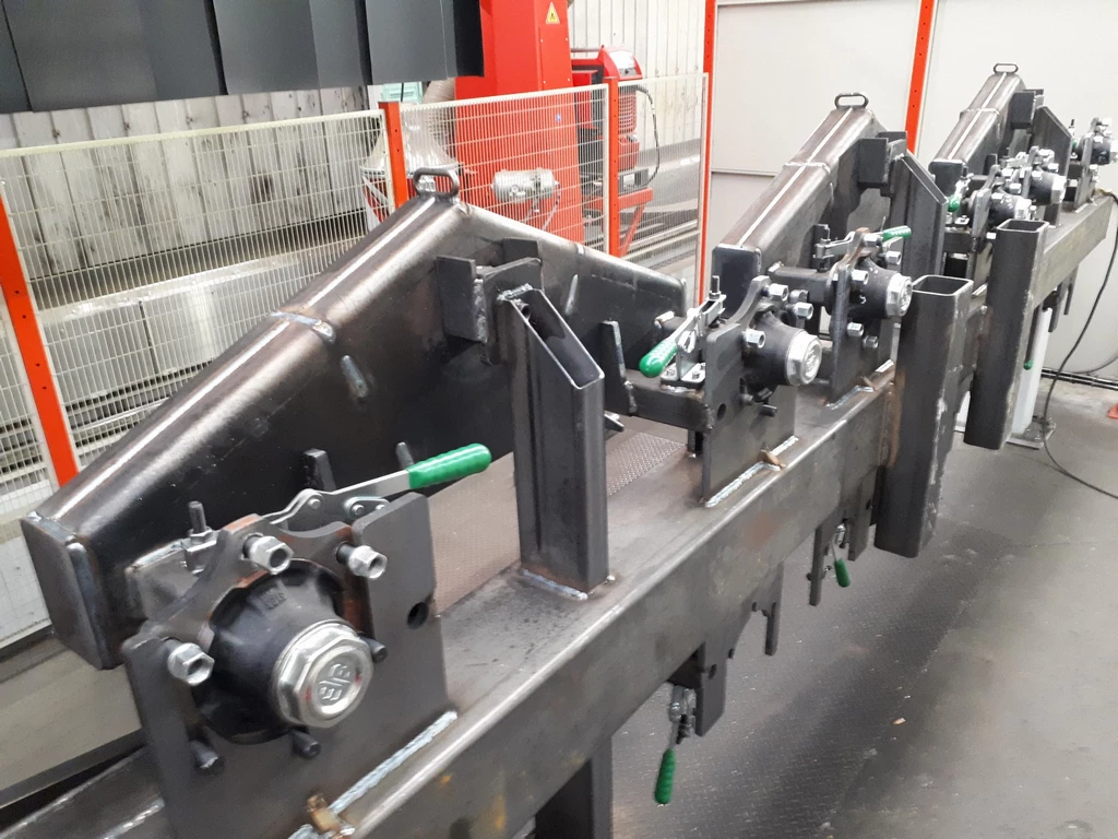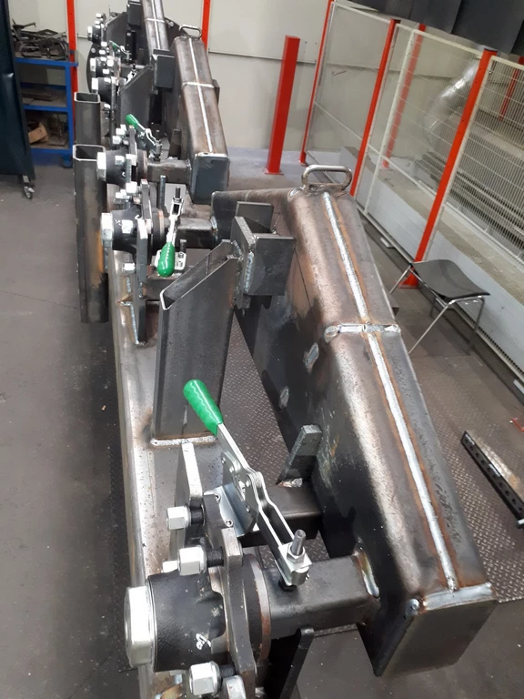 Nous intégrons des bridages rapides via sauterelles, ainsi que des centreurs assurant un positionnement optimal et le respect strict des tolérances de soudure. Cette approche garantit une répétabilité parfaite, un critère essentiel dans les productions en série.