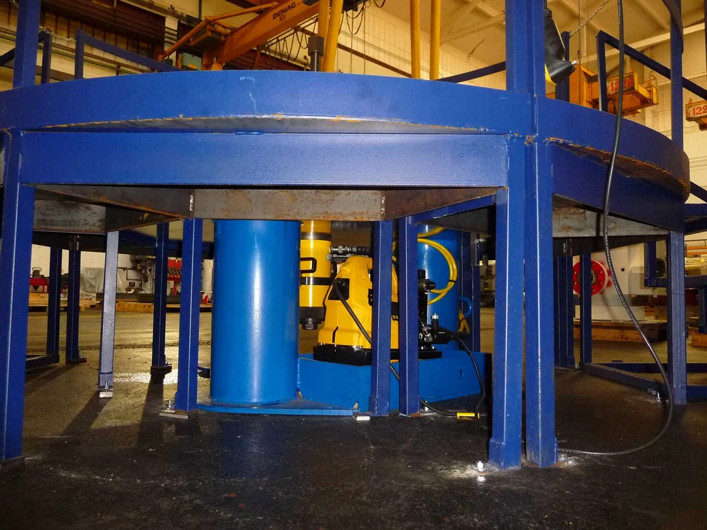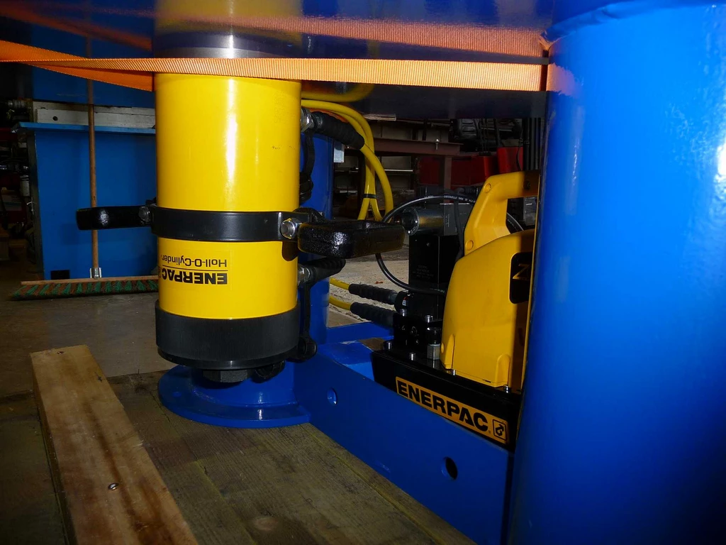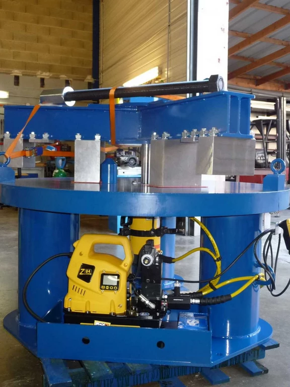 Elle permet l’assemblage de deux pièces pétrolières par l’action d’un vérin hydraulique puissant, garantissant un emboîtement précis et sûr.