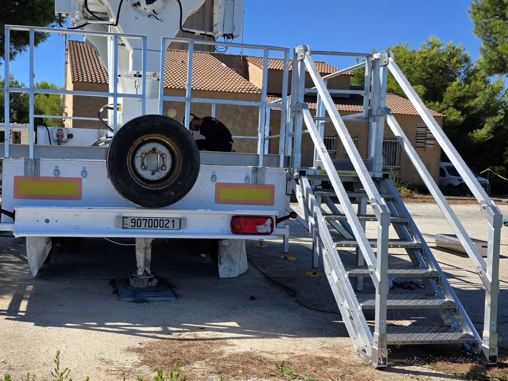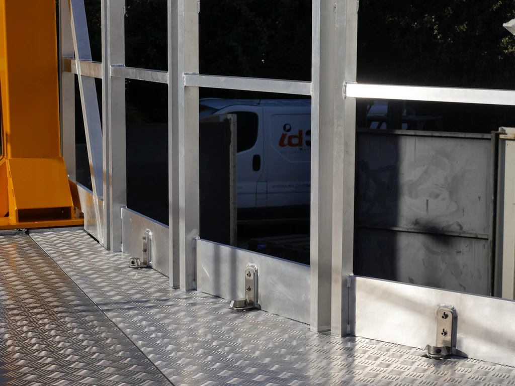 Dans un autre projet, ID3D a conçu pour la DGA des plateformes amovibles permettant aux opérateurs de travailler et d’assurer la maintenance sur des radars embarqués sur remorques routières. Les garde-corps rabattables ou amovibles évitent toute gêne lors de l’émission de l’antenne.