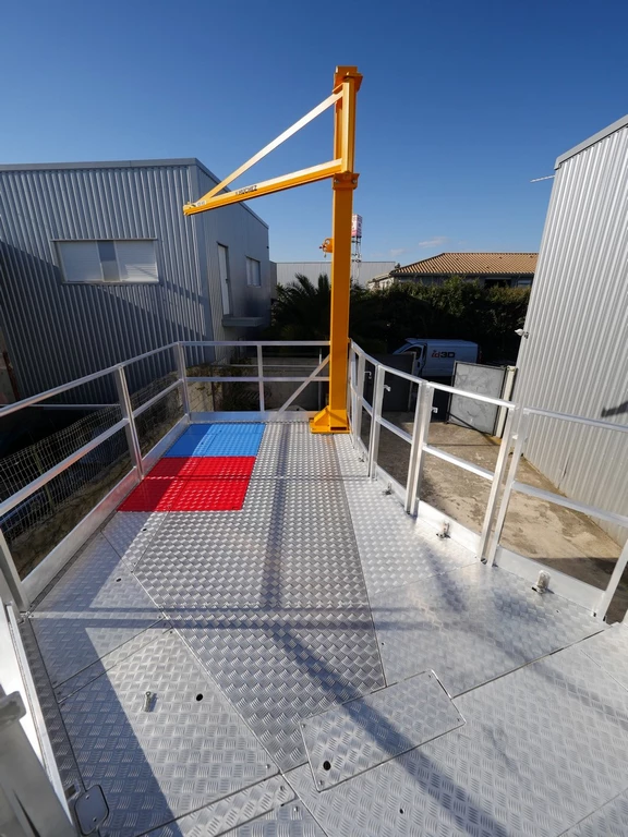 Dimensionnée pour 300 kg/m², la structure comprend également deux zones de stockage capables de supporter 1 000 kg chacune, ainsi qu’une potence de levage.