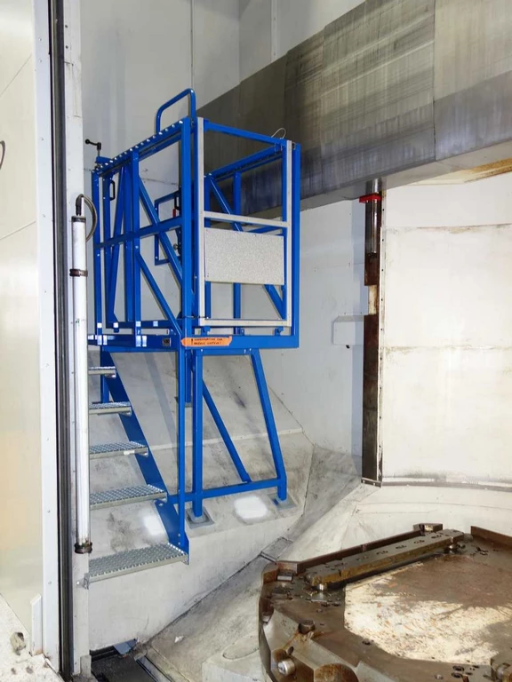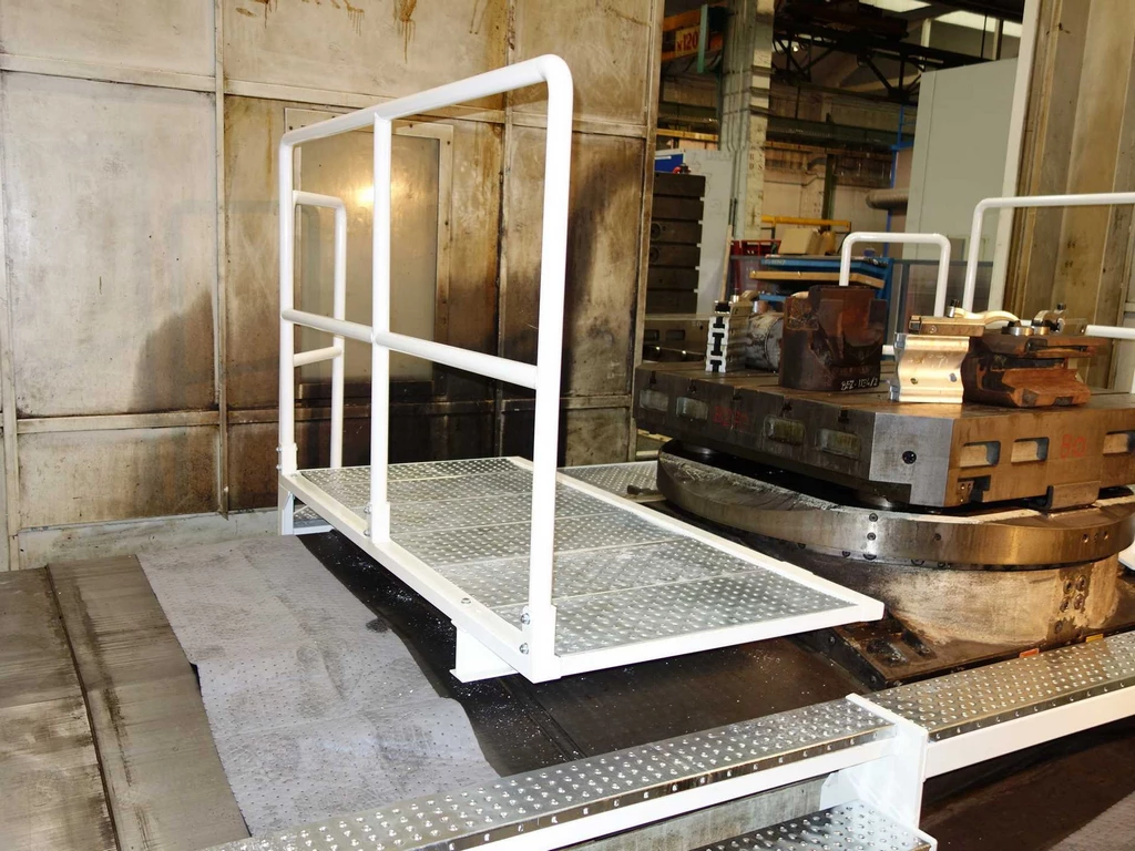 Plateforme rétractable installée dans un centre d’usinage, permettant à l’opérateur d’accéder au centre de la pièce pour des contrôles dimensionnels.