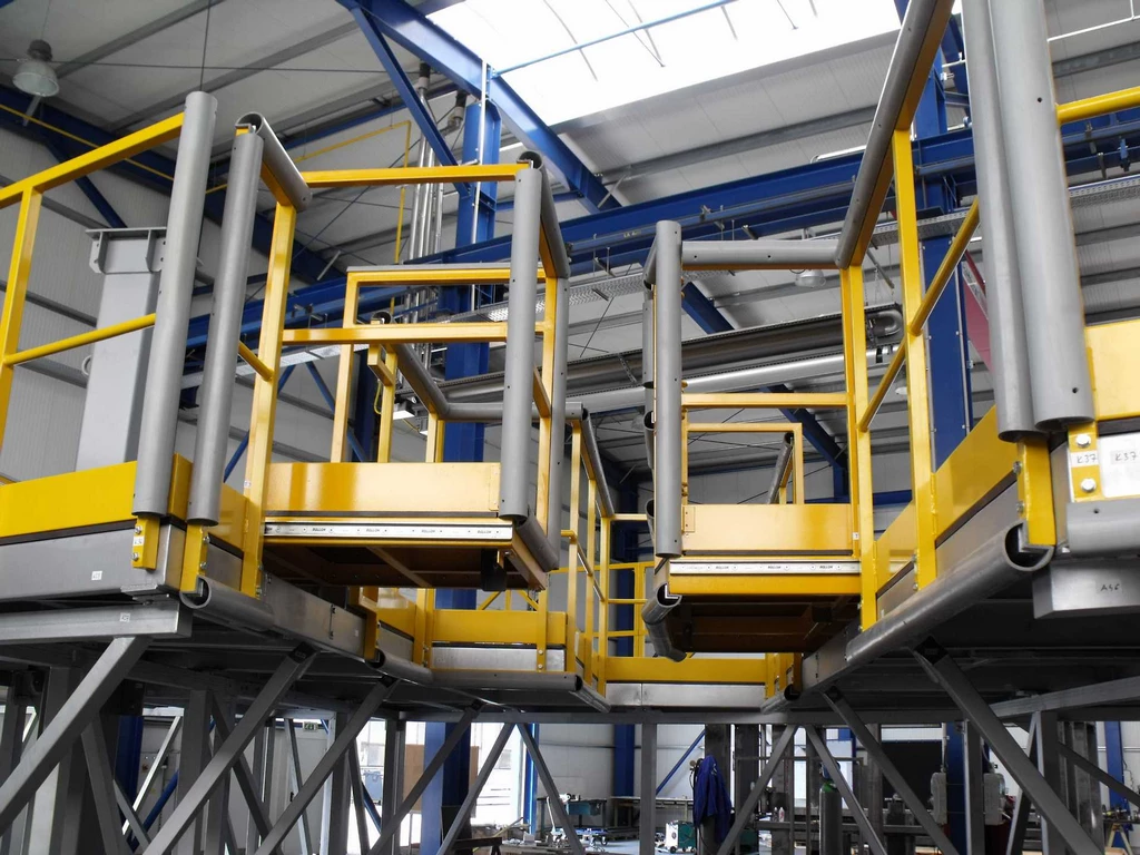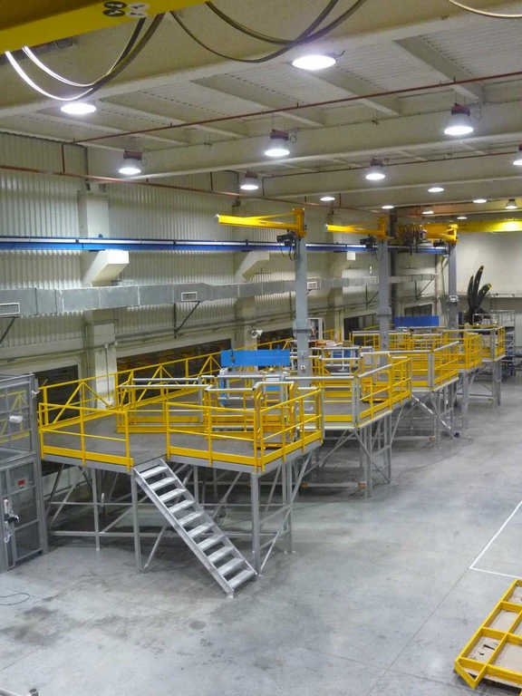 Elles évitent efficacement le travail sur escabeaux, échelles ou échafaudages, offrant un accès optimisé aux zones d’assemblage. Ces solutions sur mesure garantissent un travail en hauteur sécurisé et conforme aux exigences de l’industrie aéronautique.