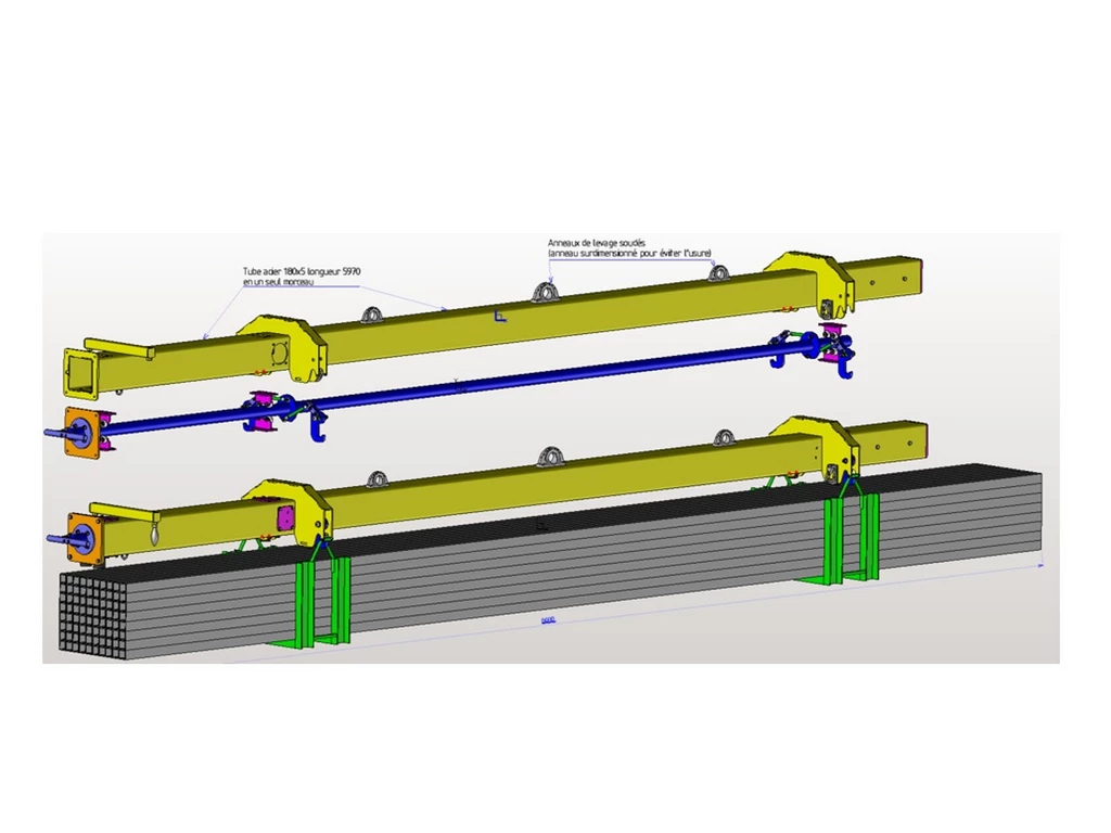 Notre bureau d’études en mécanique conçoit des palonniers de levage et autres accessoires de manutention sur mesure pour équiper vos ponts roulants, potences, palans, portiques, chariots élévateurs ou grues.