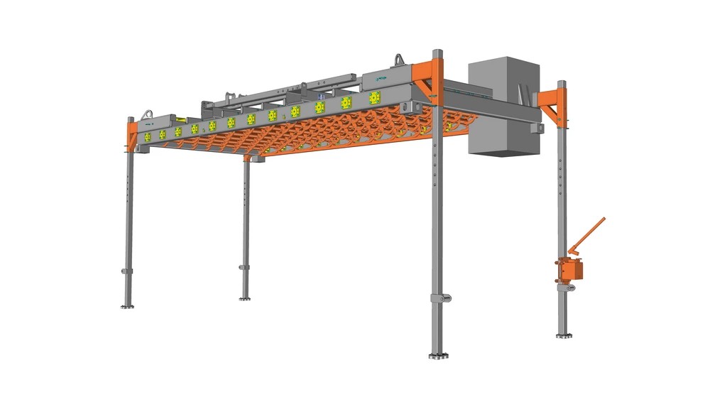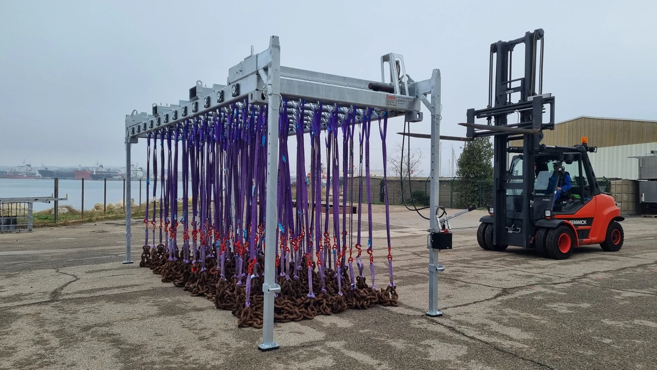 Ce nouvel équipement de manutention est doté de 96 crochets rotatifs synchronisés.